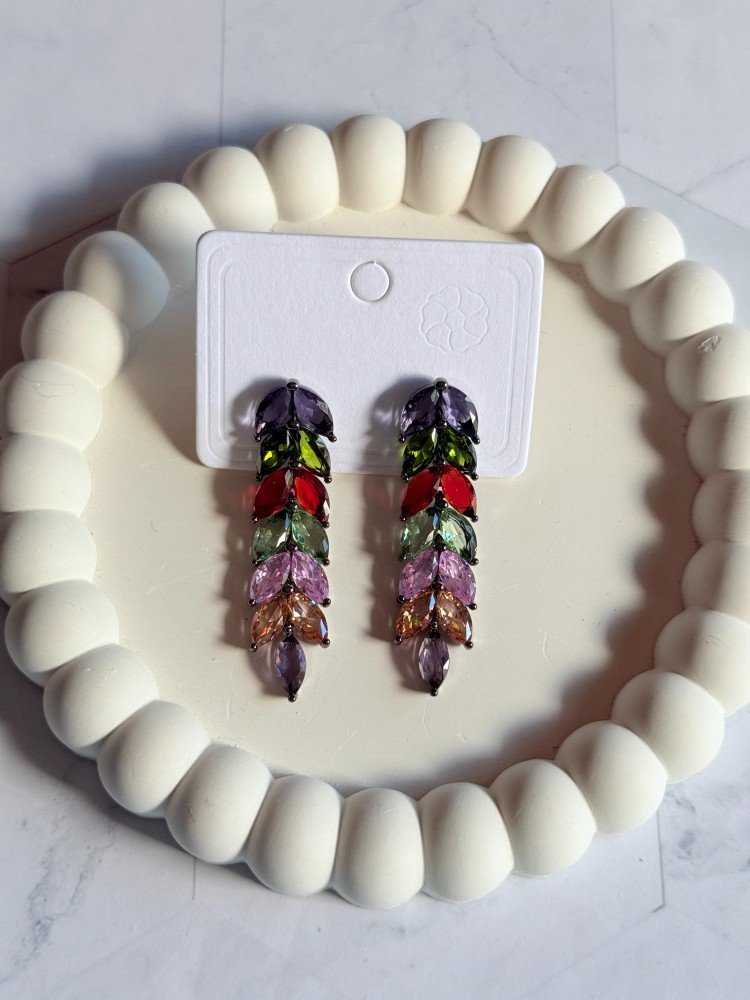 Shop Colorful Western Stone Drop Earrings at Subhranika Jewellery Collection. This stunning anti-tarnish earring piece offers timeless style for women. Buy exclusive anti-tarnish jewellery for women and add a touch of luxury to your everyday look. Shop now!