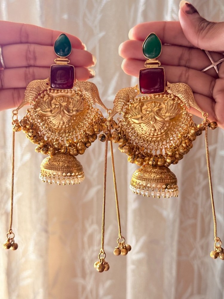 Designer Bird Style Brass Golden Jhumkas
