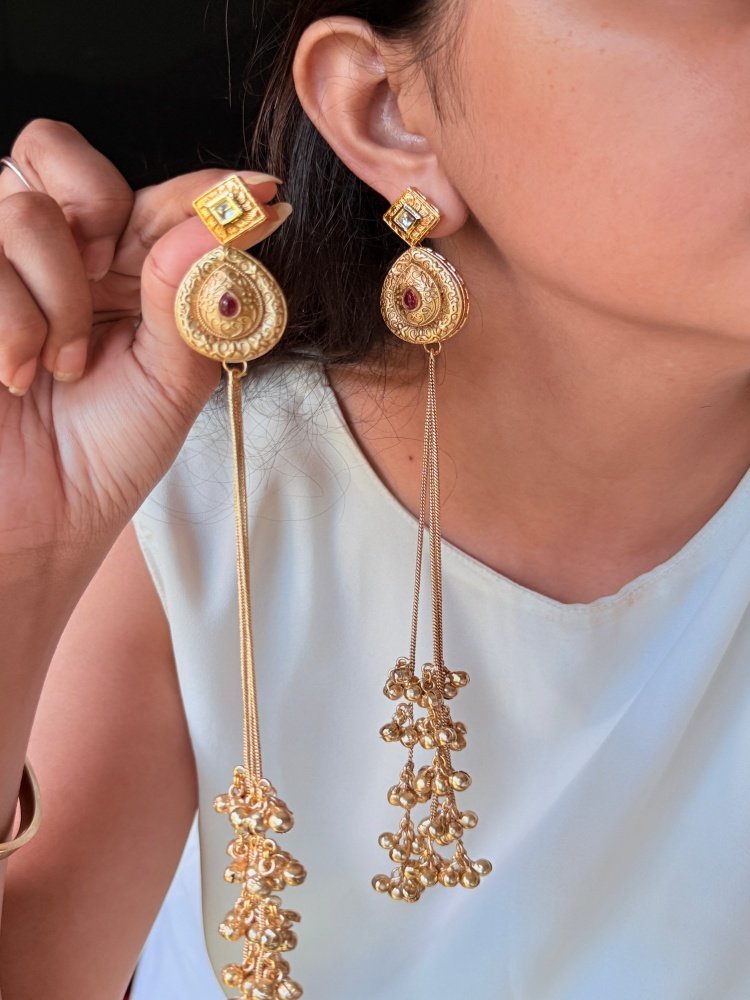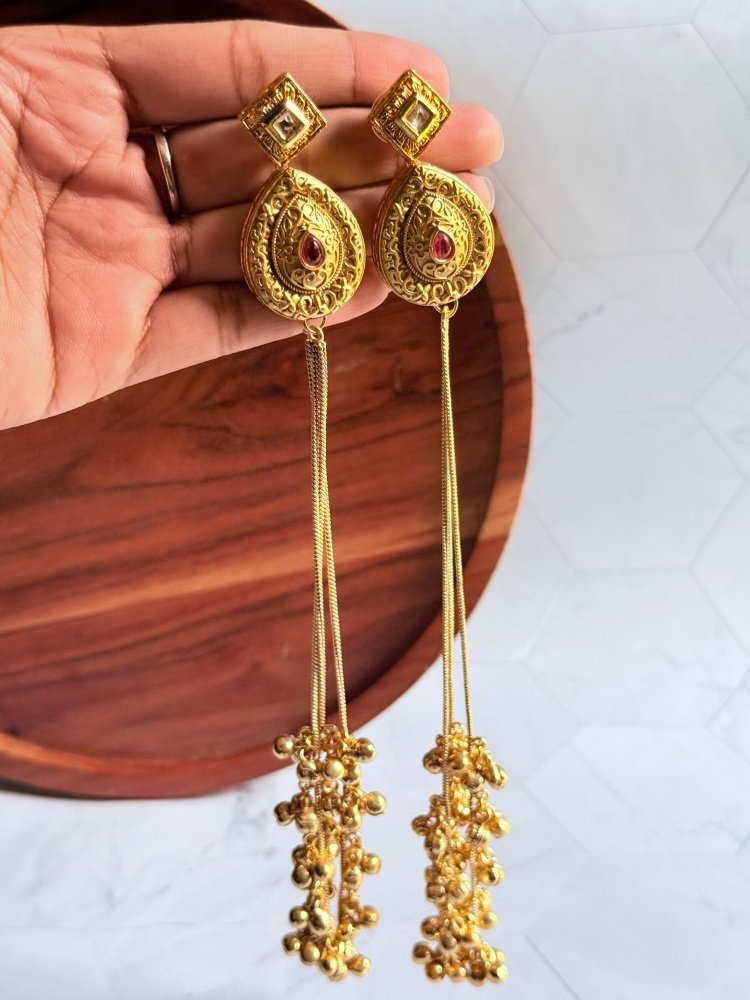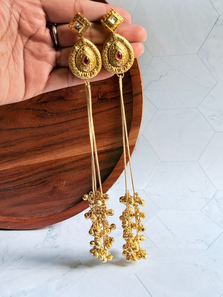 Gold Plated Long Ghungroo Earrings
