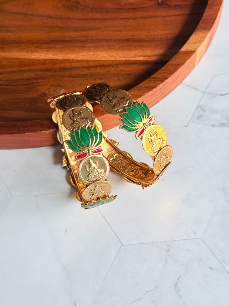 Green Lotus Temple Lakshmi Bangle Set