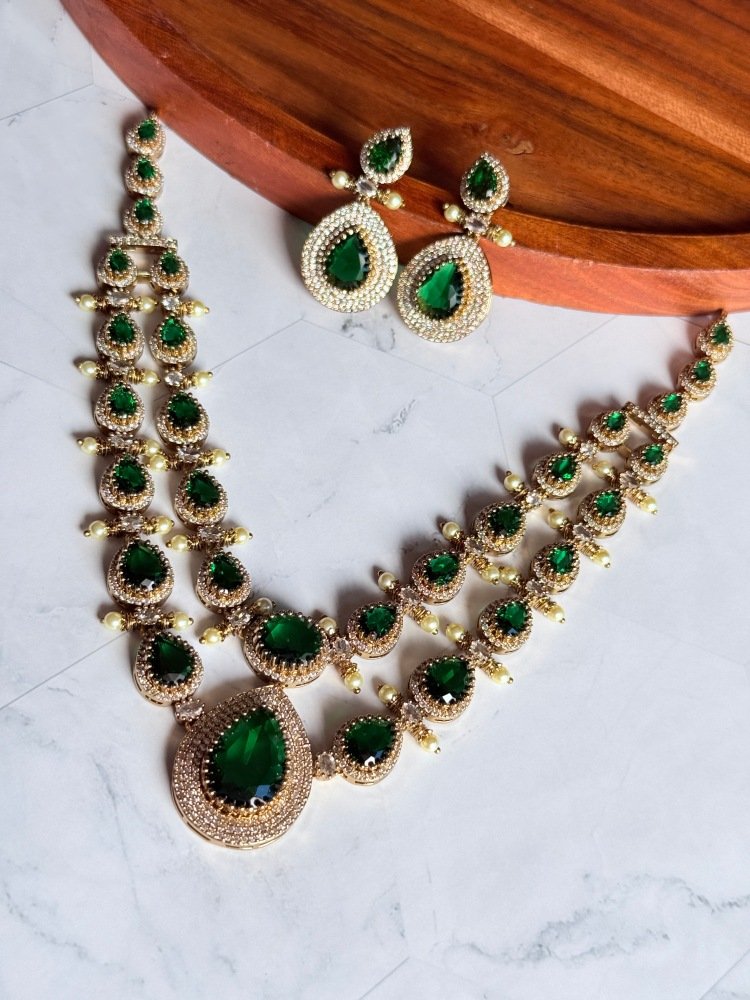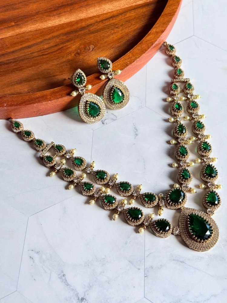 Stunning Emerald Green AD Layered Necklace Set