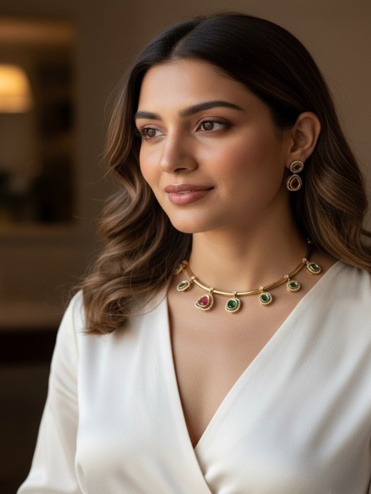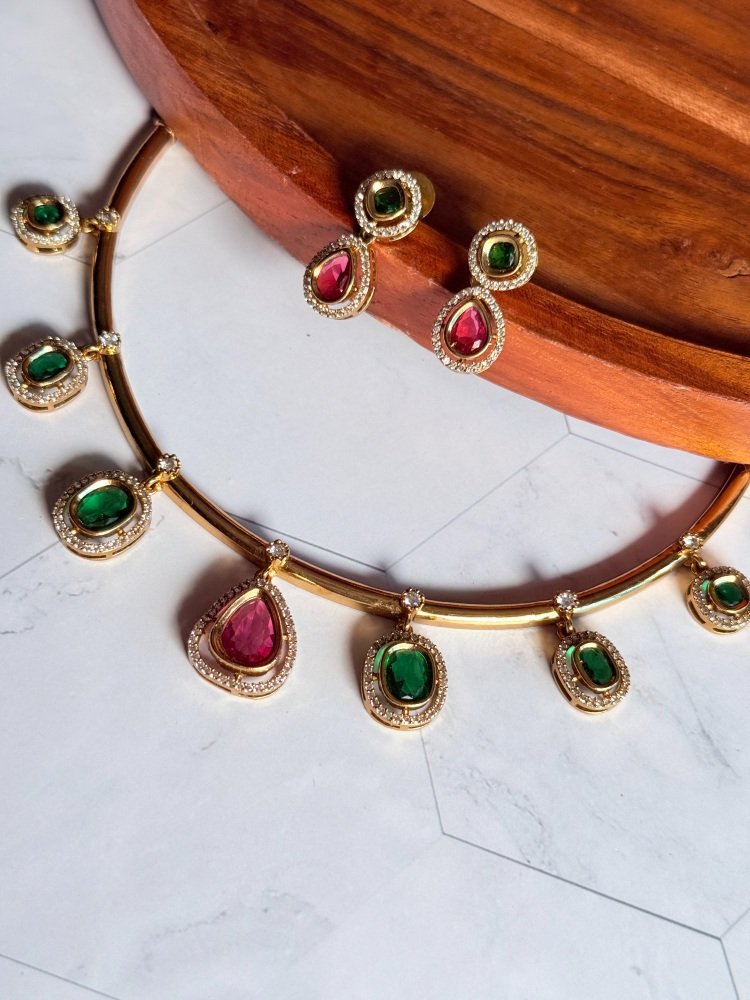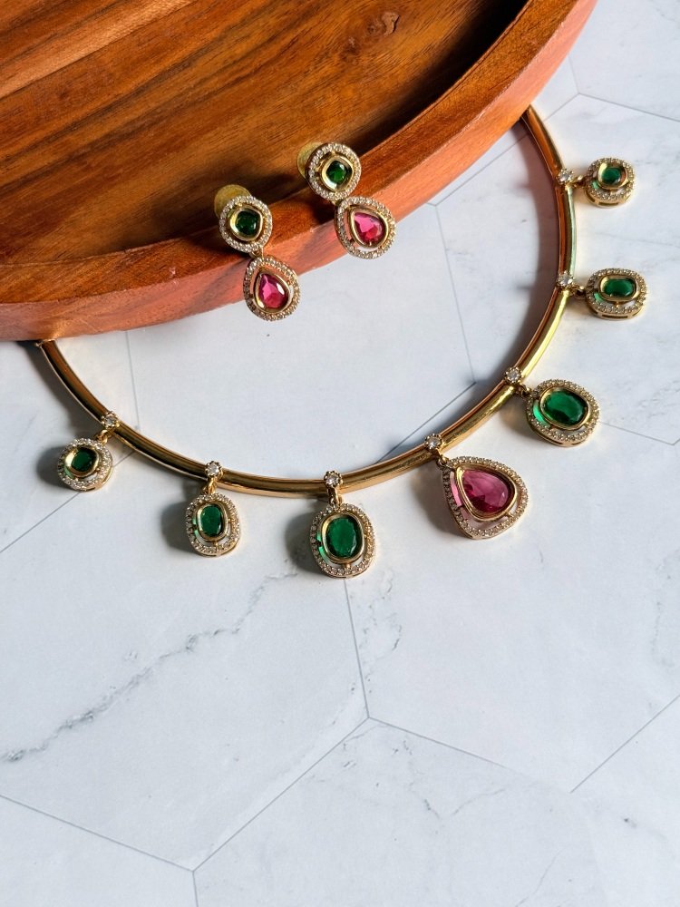 Get the Traditional Victorian Ad Hasli Golden Set at Subhranika Jewellery Collection. This stunning, stylish necklace piece offers timeless style for women. Buy exclusive temple jewellery for women and add a touch of luxury to your everyday look. Shop now!